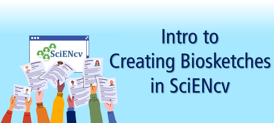 The NIH’s upcoming integration of the NIH Common Form will require grant applicants to prepare and certify their biographical sketches (or “biosketches”) using the SciENcv researcher profile platform. This session will provide an overview of SciENcv, including walking through creating a profile, linking it to researchers’ ORCID profiles, connecting to key publications in PubMed and other databases, assigning delegates, and completing the various narrative sections.